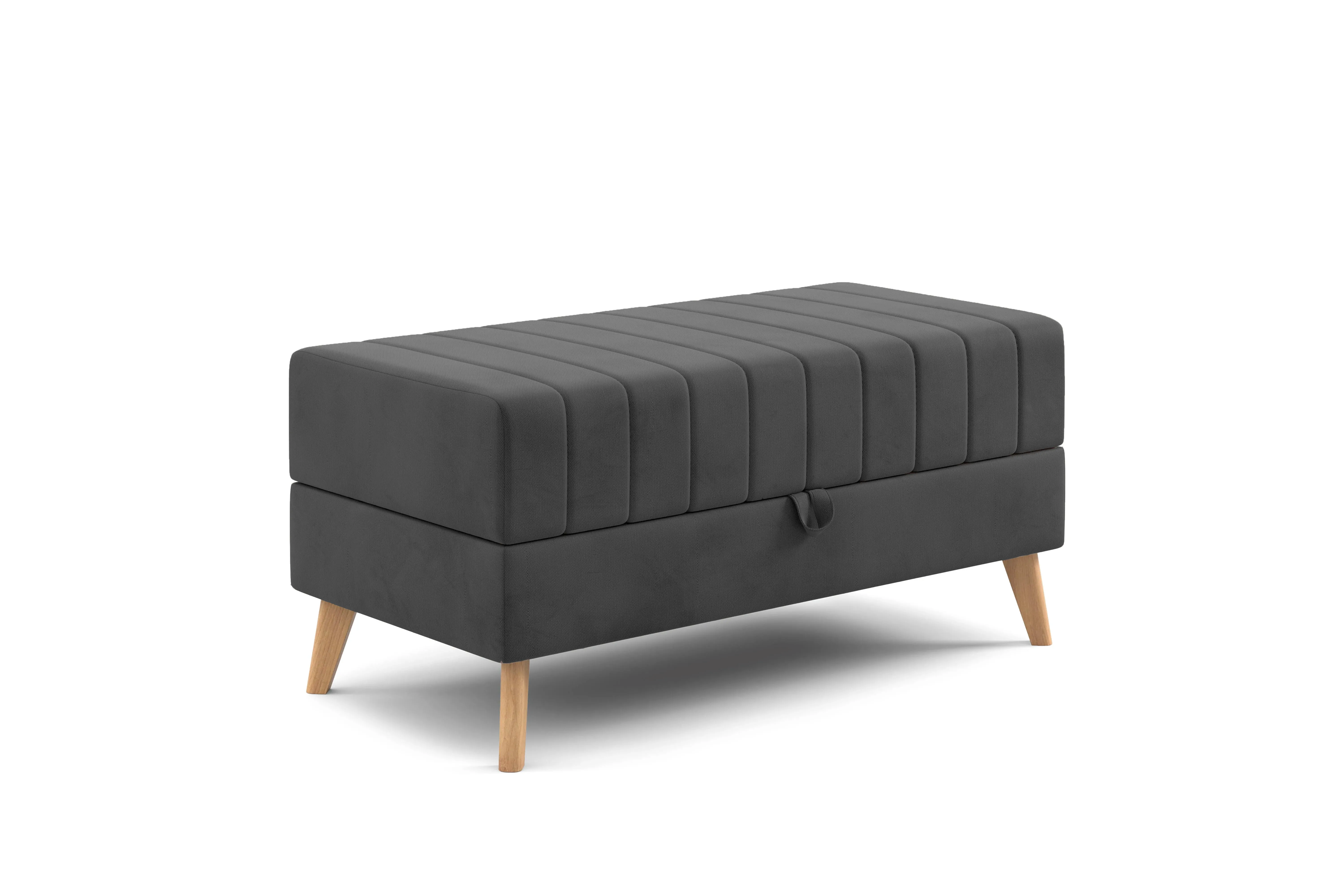 Декоративная отстрочка по высококачественному велюру добавляет приятный объем и украшает изделие. Опоры выполнены из массива берёзы, покрыты прозрачным лаком и имеют защитные войлочные наклейки. Банкетка хороша не только в гостиной, но и в гостиной, спальне, на кухне и в детской комнате. Максимальная нагрузка 110 кг.