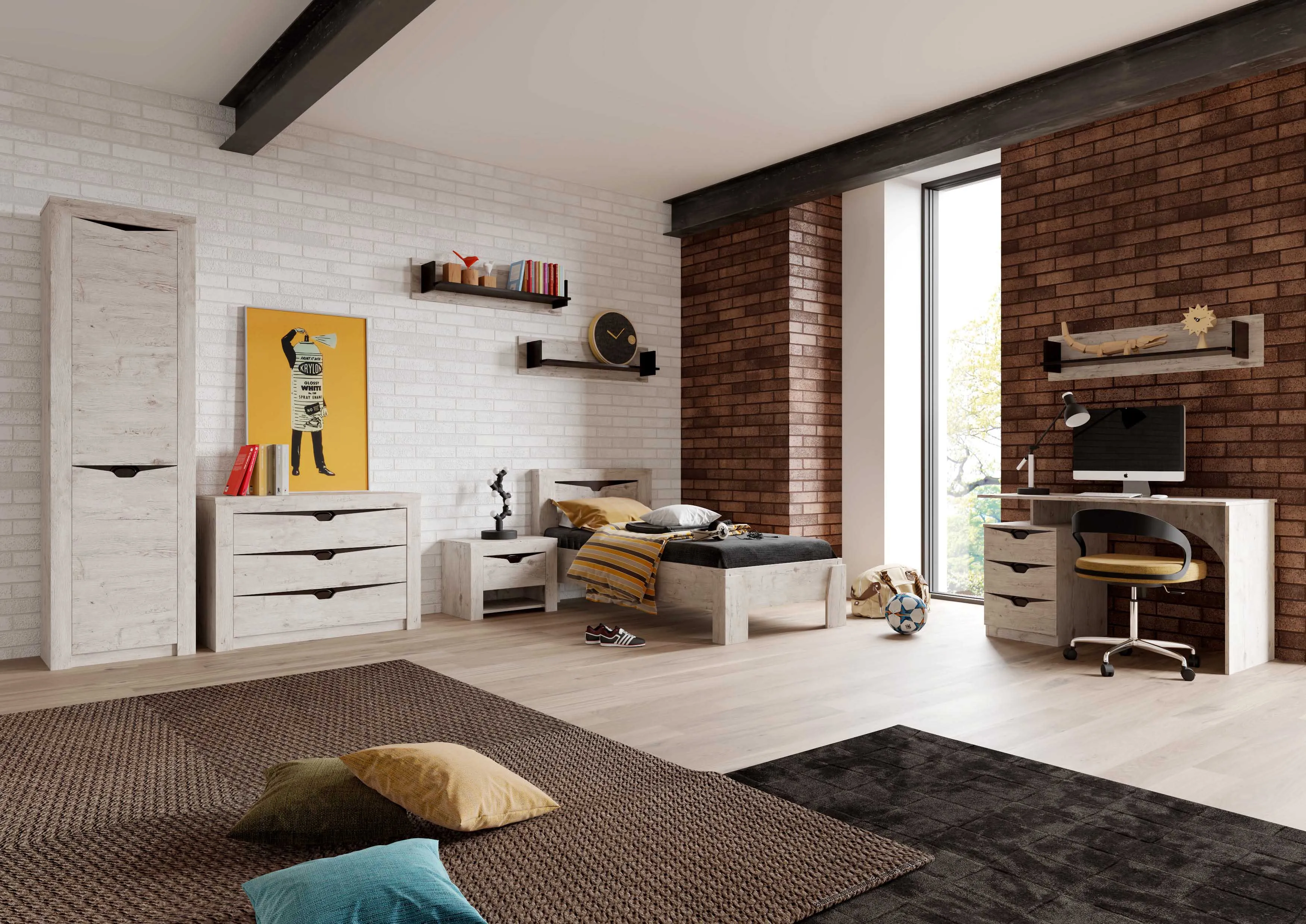"Соренто" молодёжная — один из примеров идеального сочетания практичности, оригинальности и долговечности. Цветовое исполнение подходит сразу для нескольких стилей, а габариты — для комнат разной площади.