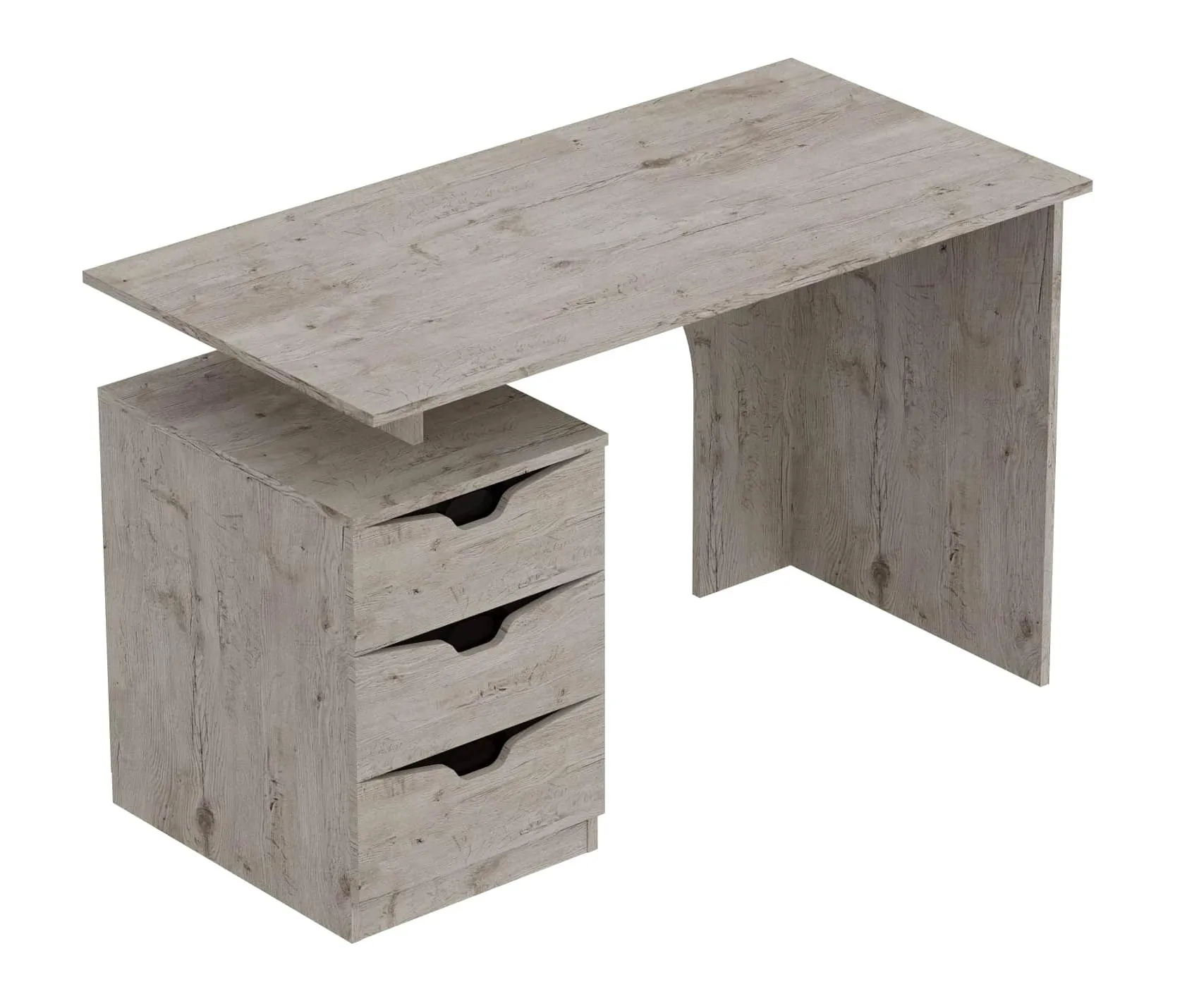 Стол изготовлен из качественных, безопасных материалов, что гарантирует его надежность и долговечность. Он оснащен тумбой с тремя ящиками, которые идеально подходят для хранения документов и канцелярских принадлежностей. Также на столе есть место для монитора компьютера и клавиатуры. На фасаде имеются декоративные вырезы, выполняющие функцию ручек.