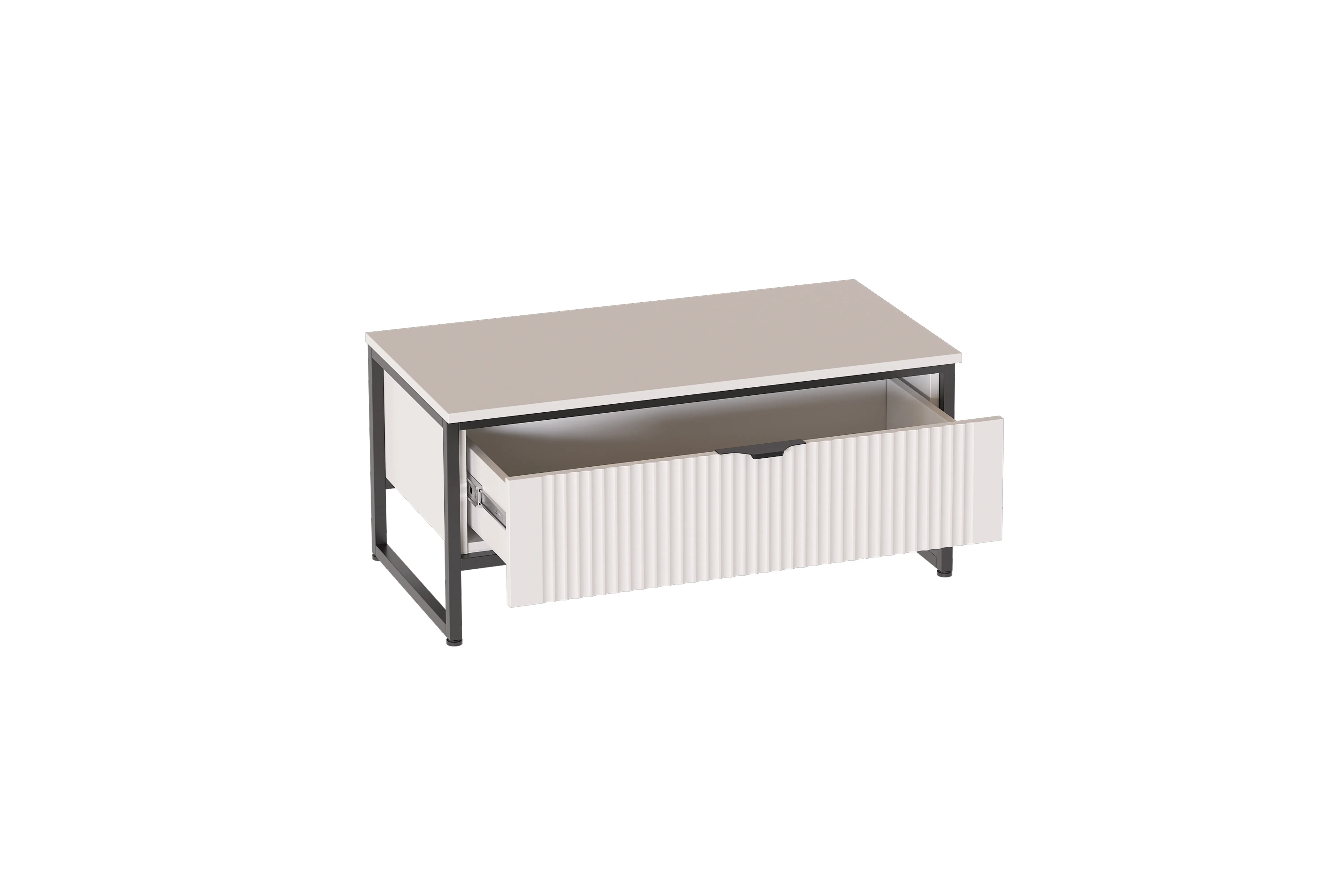 Тумба "Нора" состоит из несущего металлического каркаса и закрепленного к нему корпуса из ЛДСП , внутри которого установлен выдвижной ящик на шариковых направляющих с доводчиками.
